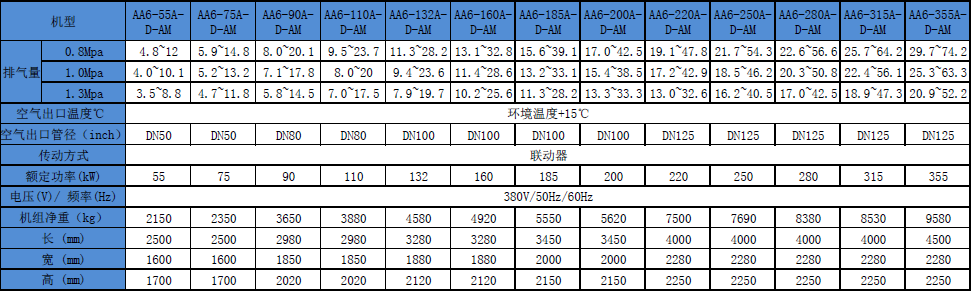 汉钟AE6螺杆空压机主要参数: