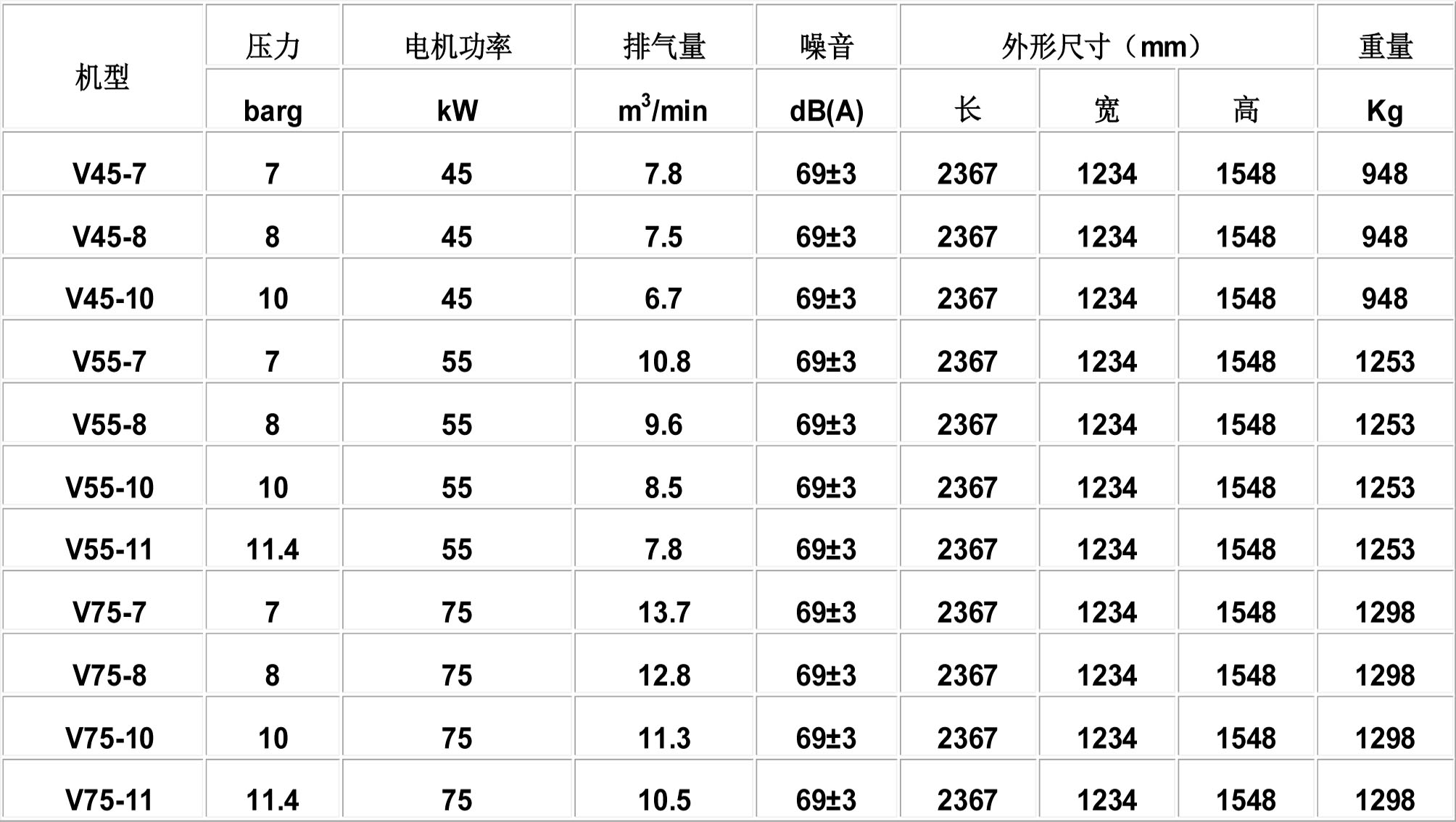 v 采用封闭静音箱式设计,箱体内侧全部贴有吸音材料,可有效吸收噪音,比一般空压机低3-5dB(A),真正达到环保标准