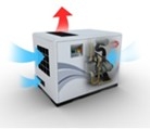 v 专业的风道设计使压缩机进气温度和内部温度保持相对较低:为空压机进气提供单独冷空气进气通道,提高稳定性和效率,为电机和电气元件的冷却提供单独进气通道,保证了可靠性,顶部排风,便于用户安装热排风系统和热回收系统